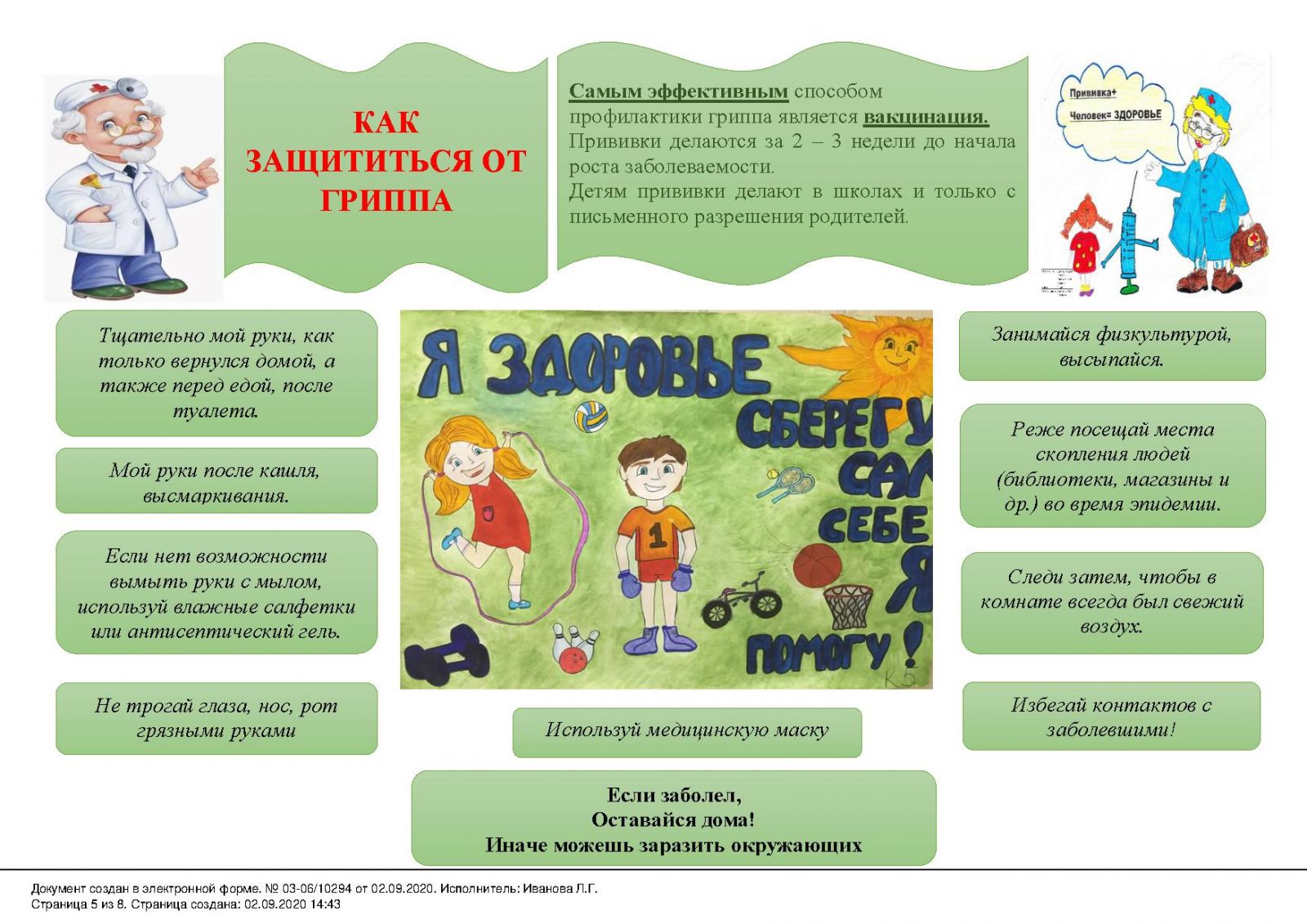 Памятки о мерах профилактики гриппа, разработанные специалистами ФБУЗ "Центр гигиены и эпидемиологии в Республике Татарстан", в целях усиления мероприятий по предупреждению заболевания гриппом и острых респираторных вирусных инфекций среди населения Республики Татарстан, в том числе новой коронавирусной инфекции (COVID-19) 16.09.2020