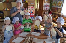 Зурлар төркеме балалары камыр белэн таныштылар һәм үз куллары белән җәеп карадылар