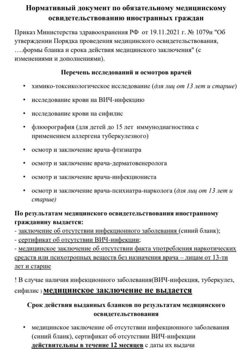 Нормативный документ по обязательному медицинскому освидетельствованию иностранных граждан