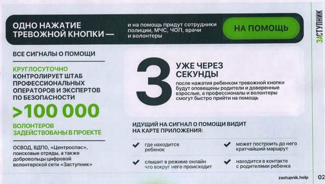 Опубликовано: 06.12.2024В соответствии с письмом Агентства стратегических инициатив по продвижению новых проектов от 05.11.2024 № 003455-ОБ-ЦПР/АСИ, Уполномоченного по правам ребенка в Республике Татарстан И.В.Волынец от 07.11.2024 № 726-исх и, учитывая важность обеспечения безопасности детей, Министерство образования и науки Республики Татарстан просит организовать работу по подключению и распространению мобильного приложения «Заступник».