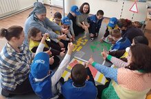 Бәрәскә урта мәктәбе базасында эшләп килүче "ЮИД" берләшмәсе укучылары занятиеда юл йөрү билгеләрен ясыйлар.