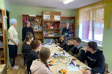 Әтнә үзәк китапханә хезмәткәрләре Иске Өҗем мәктәбенең 7-8 нче сыйныф укучыларына “Канзаши” техникасы кулланып “Георгий тасмасы – Җиңү билгесе” дип исемләнгән осталык дәресе үткәрделәр 04.04.2025