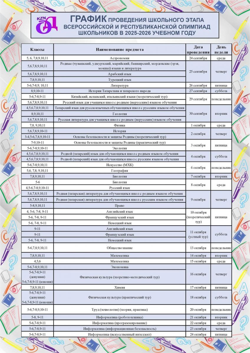 Приказ МБОУ "Школа №62" о проведении школьного этапа городских предметных олимпиад на татарском языке