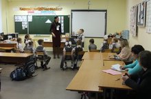 Ученики 1 Б класса продолжают знакомство со школой. 24 октября они посетили библиотеку, познакомились с библиотекарем - Гульсиной Тавгусовной, которая рассказала и показала ребятам читальный зал, что такое формуляры и как нужно обращаться с книгой.
