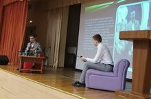 20 января в гимназии прошла вторая встреча проекта "Судьба человека". На этот раз главным героем выпуска стал - папа ученика 3 Б класса Артемьева Максима - Виталий Павлович. Он - знаменитый радиоведущий нашего города, участник движений КВН и стендап, организатор и ведущий интеллектуальных игр – квизов.
