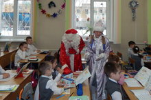 Сегодня учащиеся начальной школы получили подарки на Новый год, от деда Мороза и Снегурочки.