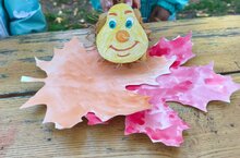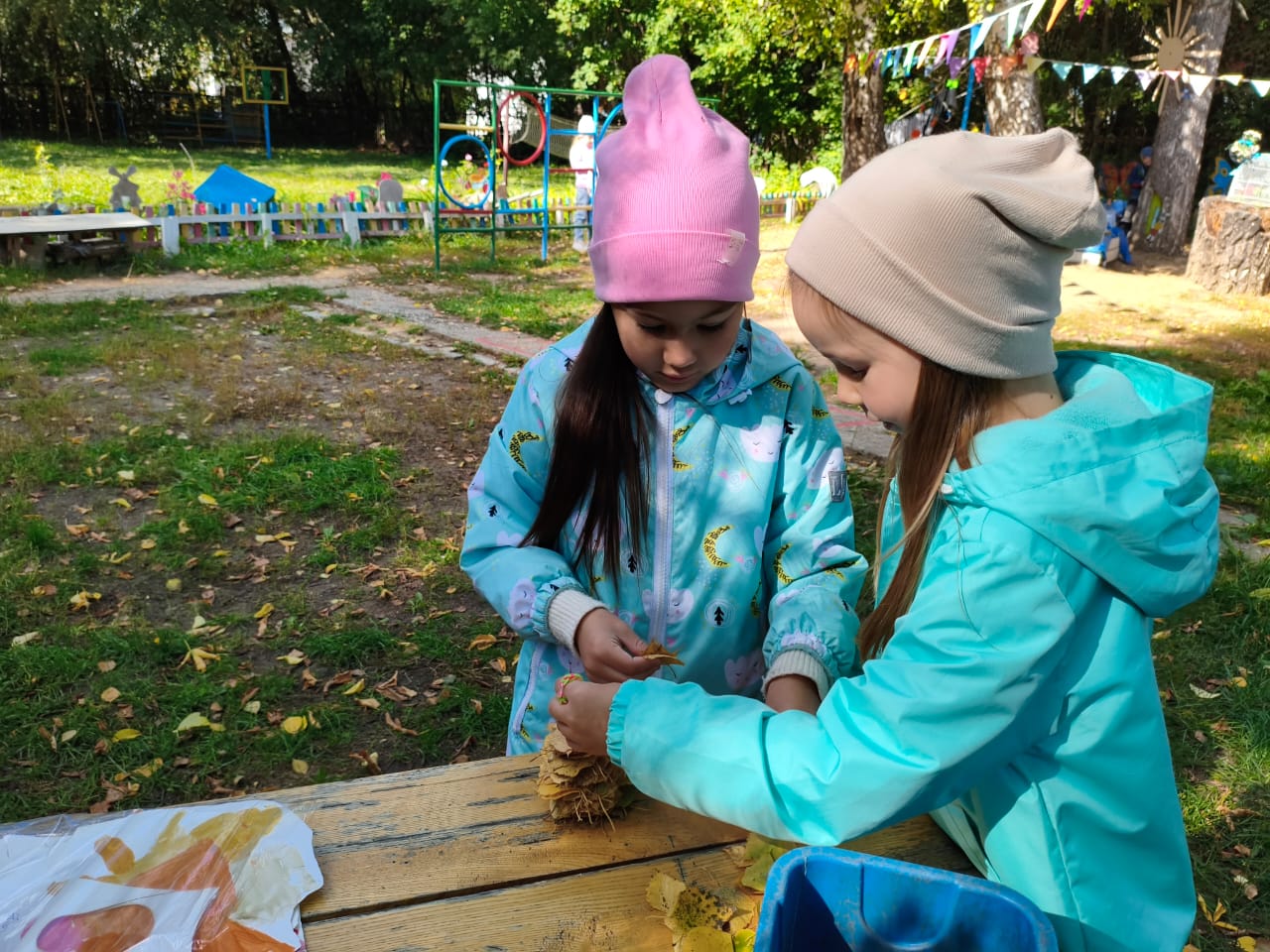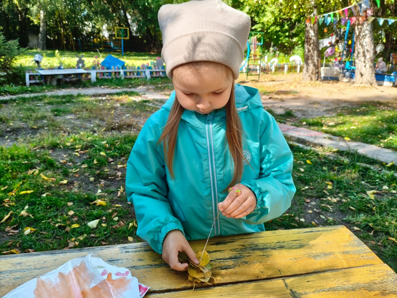Поделку из осенних листьев в виде забавной гусеницы сделали девочки из подготовительной к школе группы "Сказка".