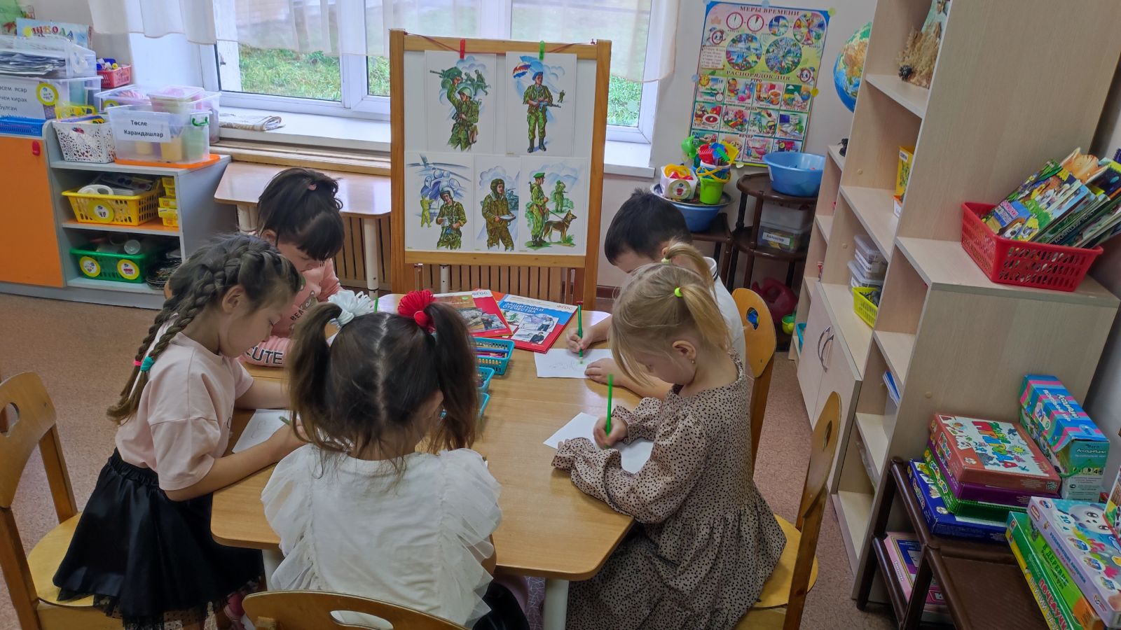 Воспитатель старшей группы "Капитошка" Романова Ю.В. большое внимание уделяет патриотическому воспитанию детей. Занятие по рисованию на тему "Солдат на посту" способствовало формированию у её воспитанников чувства гордости и уважения за Российскую армию.