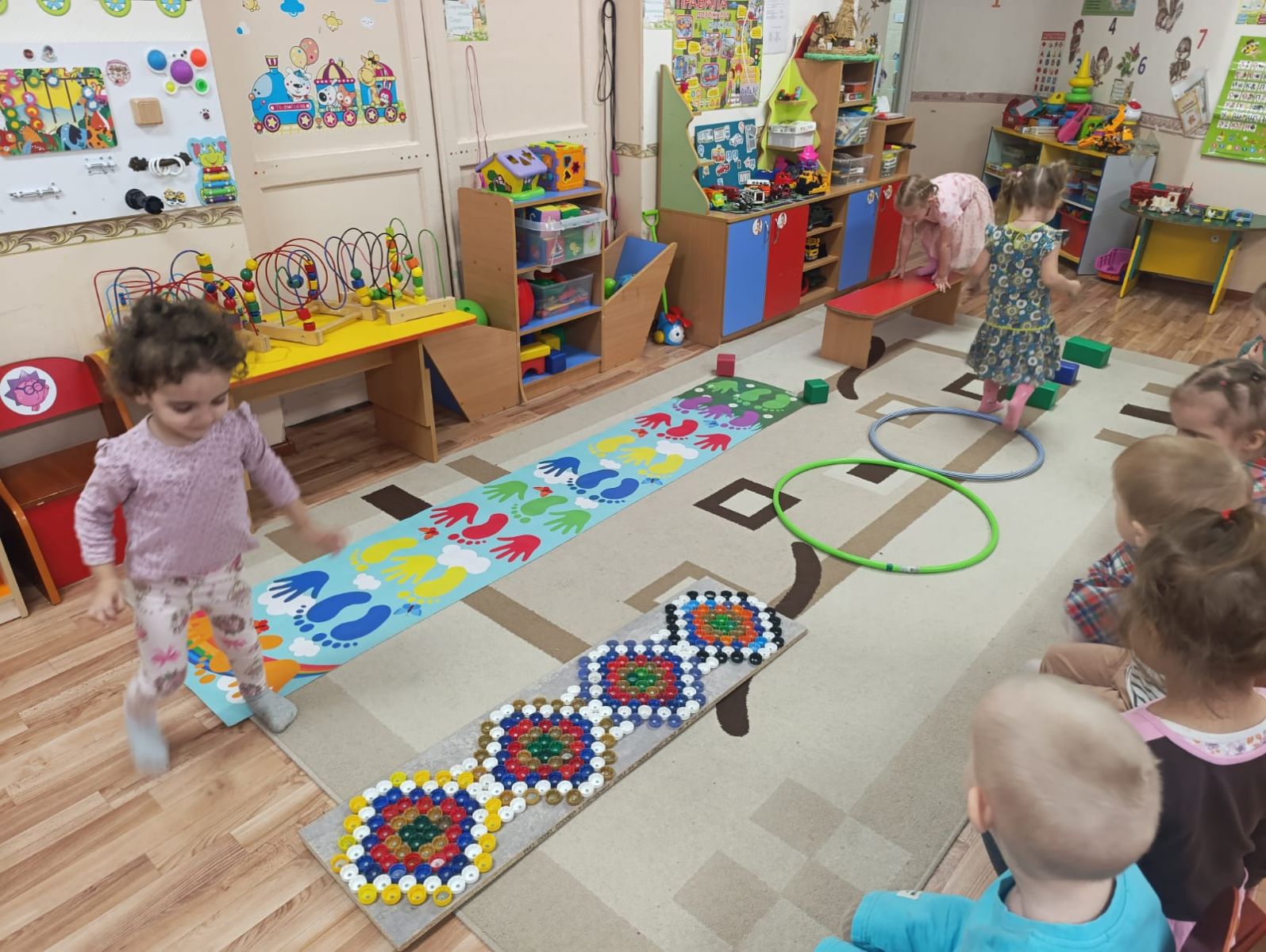 Воспитатель младшей группы "Ручеёк" Отина М.Н. в работе с малышами использует нейроигры и упражнения, которые позволяют непринуждённо, в игровой форме, эмоционально окрашено учить ребенка чувствовать пространство, свое тело, развивать зрительно-моторную координацию, формировать правильное взаимодействие ног и рук, совершенствовать свое зрительное и слуховое внимание, а также учиться последовательно выполнять поставленную педагогом инструкцию.
