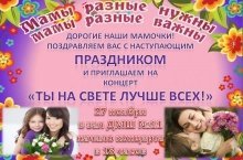 Дорогие наши мамочки! Поздравляем Вас с наступающим праздником и приглашаем на концерт "Ты на свете лучше всех!"