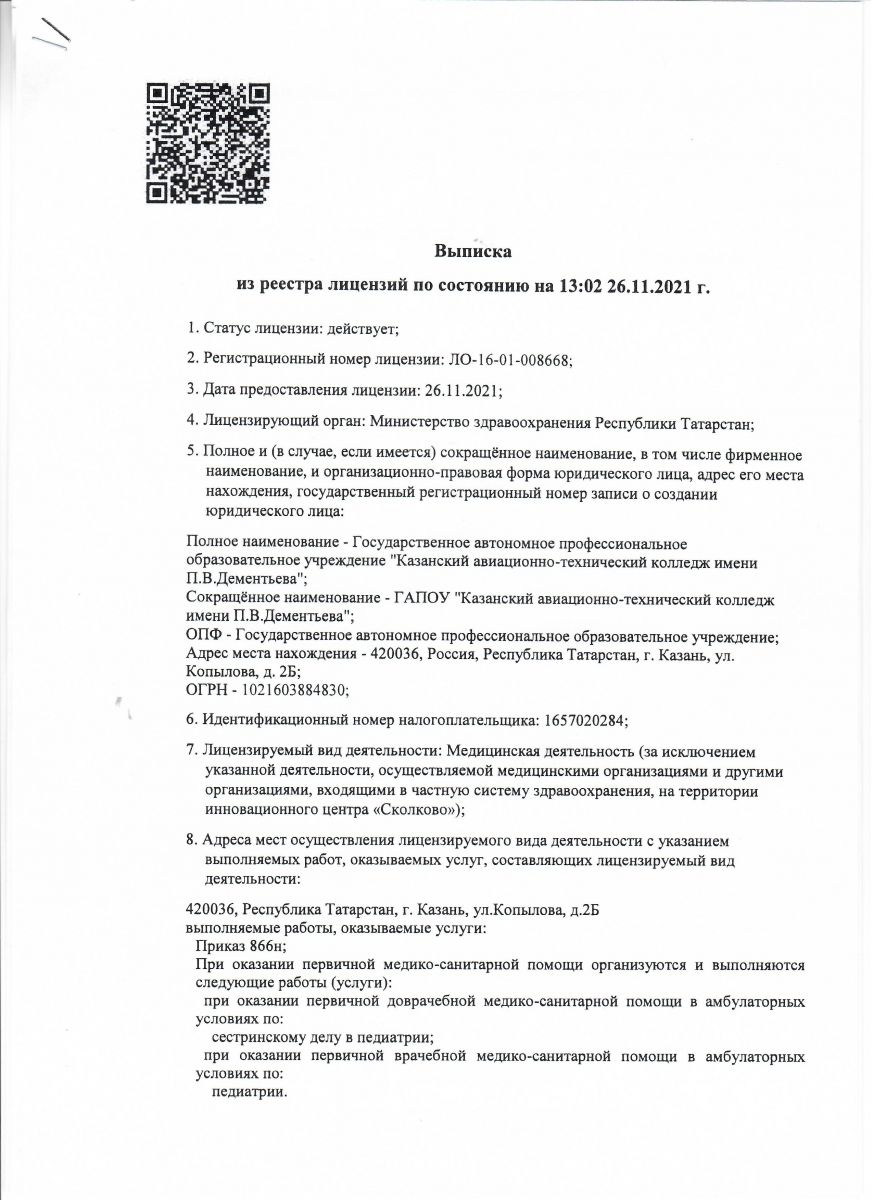 Выписка из реестра лицензий по состоянию на: 11.11.2025 |
