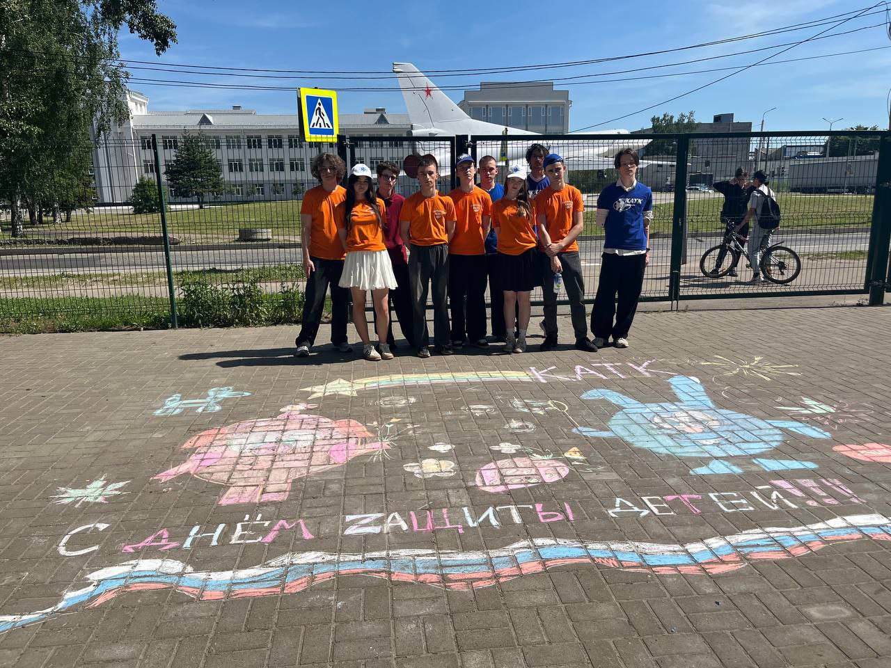 Опубликовано: 03.06.2025Ко Дню защиты детей организована акция "Рисую мелом". Студенты нарисовали персонажей мультфильмов смешариков, самолет, солнце…