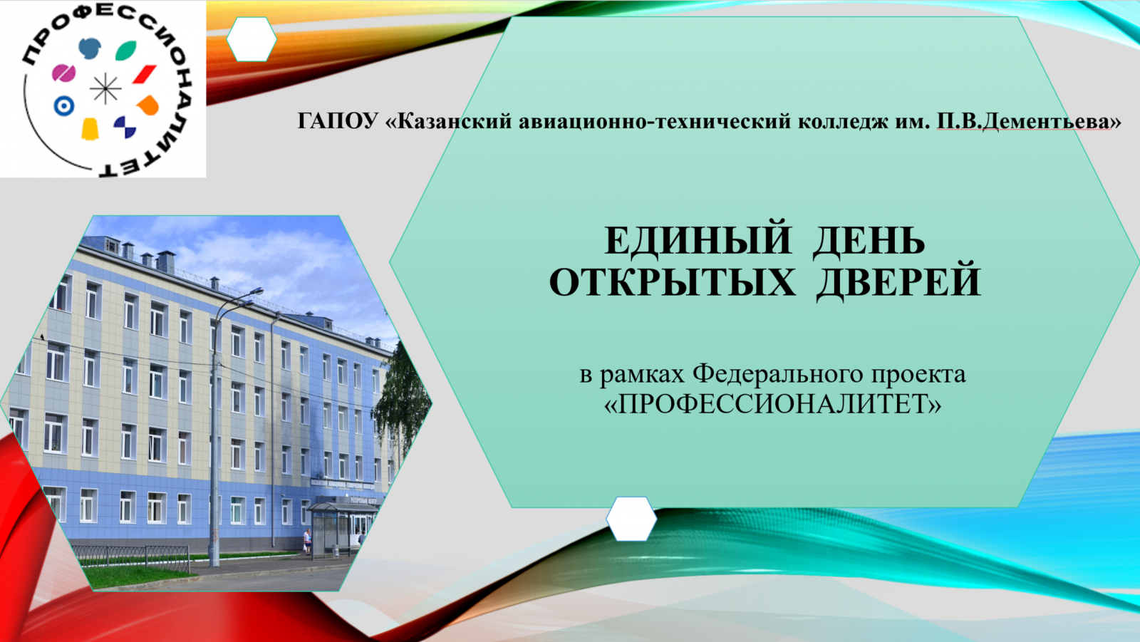 18 октября в 12.00 в ГАПОУ "Казанский авиационно-технический колледж им. П.В.Дементьева" проводится Единый день открытых дверей в рамках федерального проекта «Профессионалитет»