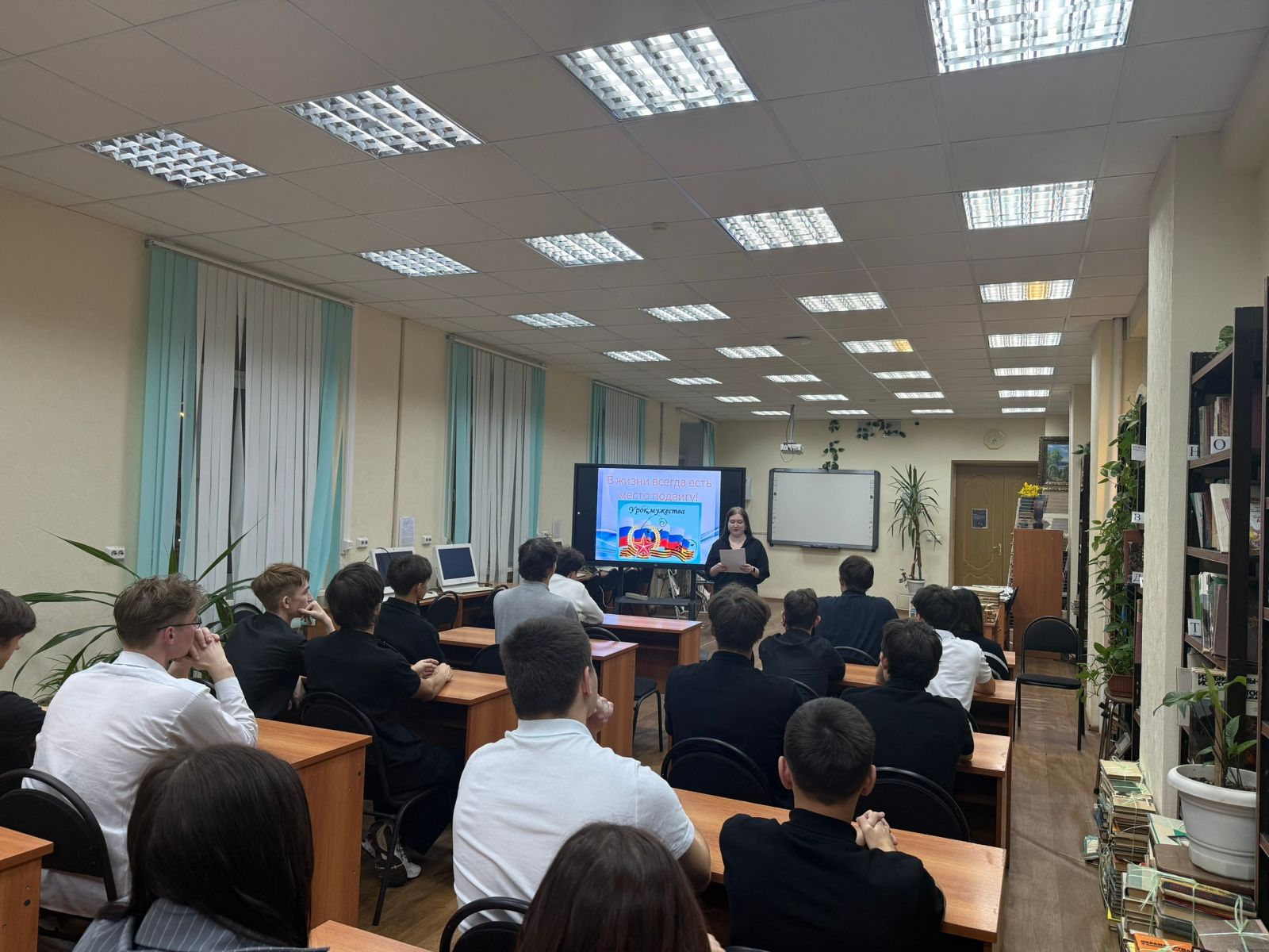 Советник директора провела для студентов Урок мужества «Подвиг во имя жизни»,с рассказом о конкретных примерах героизма сотрудников органах внутренних дел при исполнении служебных обязанностей.