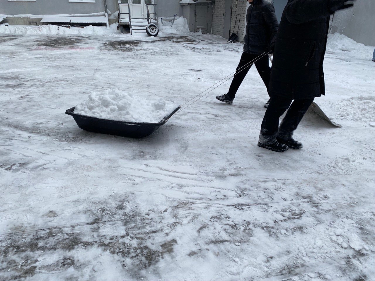 Наш девиз дня: «Лопата — лучший тренажер!». Собрались большой компанией, врубили музыку и за час превратили огромные сугробы в ровные дорожки.