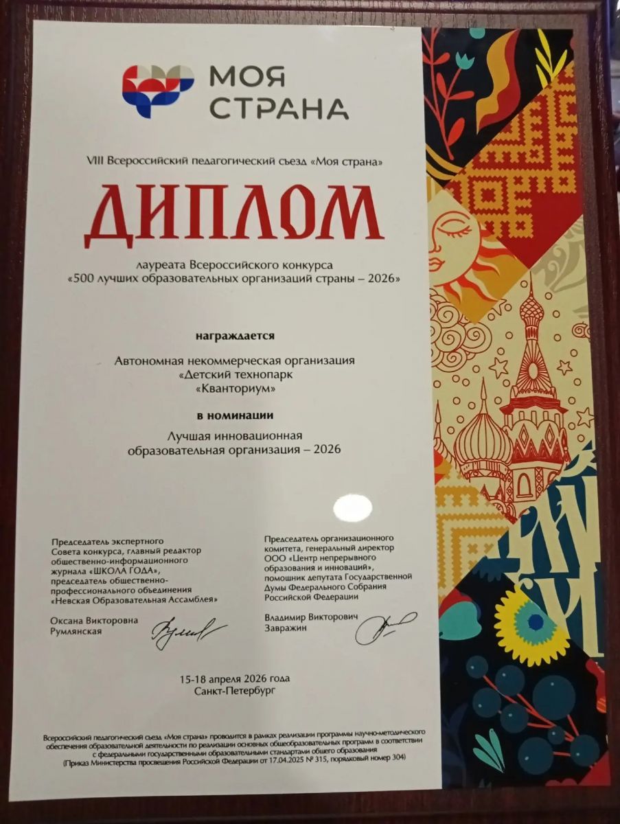 В рамках мероприятий съезда состоялась церемония награждения лауреатов Всероссийского конкурса «500 лучших образовательных организаций страны – 2026». Чтобы соответствовать высокому статусу инновационной организации, необходимо было выполнить множество критериев. Но самое важное — это постоянное развитие, партнерство и умение держать уровень качества.