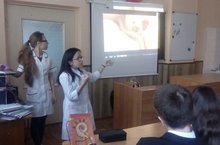 В нашей школе 29 октября в рамках акции популяризации медицинских знаний прошла лекция волонтеров—медиков научного кружка КГМУ.Студенты провели урок- лекцию « Сердечно—сосудистые заболевания: инсульт. Профилактика и первая помощь» в 8 классе. Учащиеся получили информацию о проблеме заболеваний сердечно-сосудистой системы , профилактики и первой помощи.