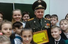 22 февраля в 4Б классе прошла встреча с офицером в отставке, который посвятил всю жизнь служению народу в рядах Советской армии. Митрахович Виктор Павлович рассказал ребятам об армейских порядках тех времён, о праздниках и буднях простых служащих, показал форму офицера и устроил просмотр фотографий из личного архива. Мероприятие было посвящено 100-летию Вооруженных сил России.Кл.руководитель – Якупова В.Г.