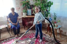 Ученица 1г класса Аглетдинова Камилла помогает бабушке. Молодец!