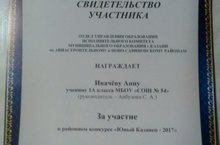 Ученица 1 А класса, классный руководитель С.А. Арбузова, приняли участие в районном конкурсе "Юный Казанец-2017"