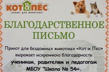 Спасибо за собранный корм для нашиххвостатых питомцев. Спасибо за воспитание гуманизма и чувства ответственности к окружающему миру.