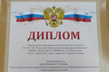 Поздравляем Даминову Ульяну и её научного руководителя Коновалову Н.А.с заслуженным дипломом третьей степени за активное участие в I Всероссийской научно-практической конференции имени Джавдата Валеевича Вилькеева с международным участием.