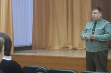В рамках месяца патриотизма 19.02.2014г. для учеников 8-11 классов был приглашен кадровый офицер районного военкомата,