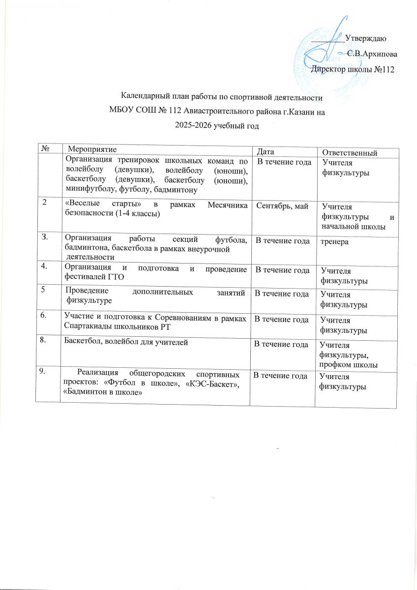 План спортивно-массовых, физкультурно-спортивных и социально-значимых мероприятий на учебный год