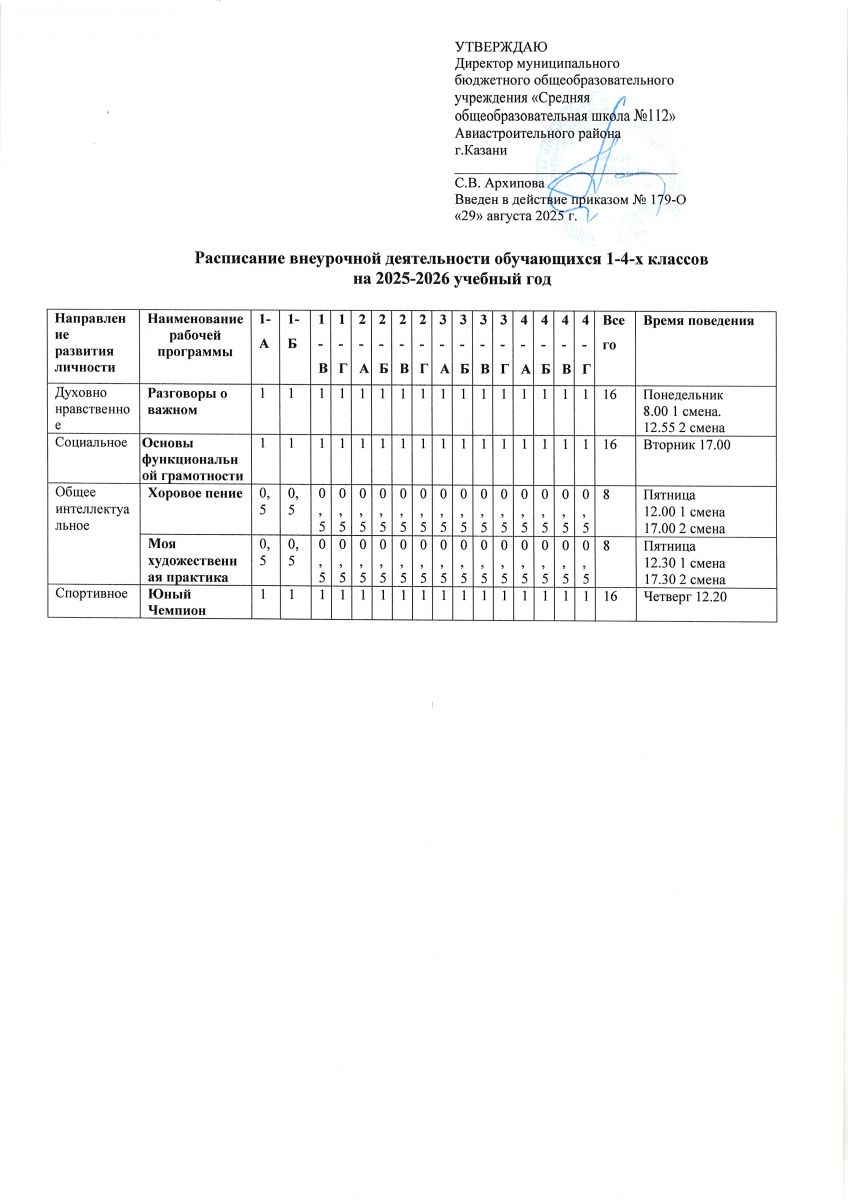 - Расписание внеурочной деятельности на уровень НОО на 2025-2026 учебный год