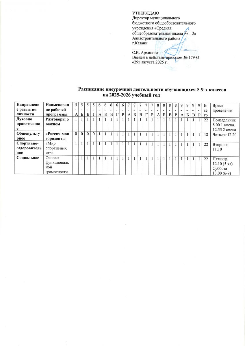 - Расписание внеурочной деятельности на уровень ООО на 2025-2026 уч.год