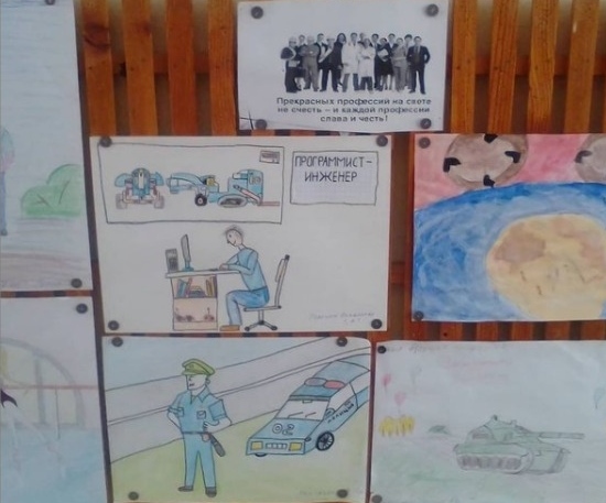В рамках месячника профориентации в школе была организована выставка рисунков "Прекрасных профессий на свете не счесть - и каждой профессии слава и честь!"