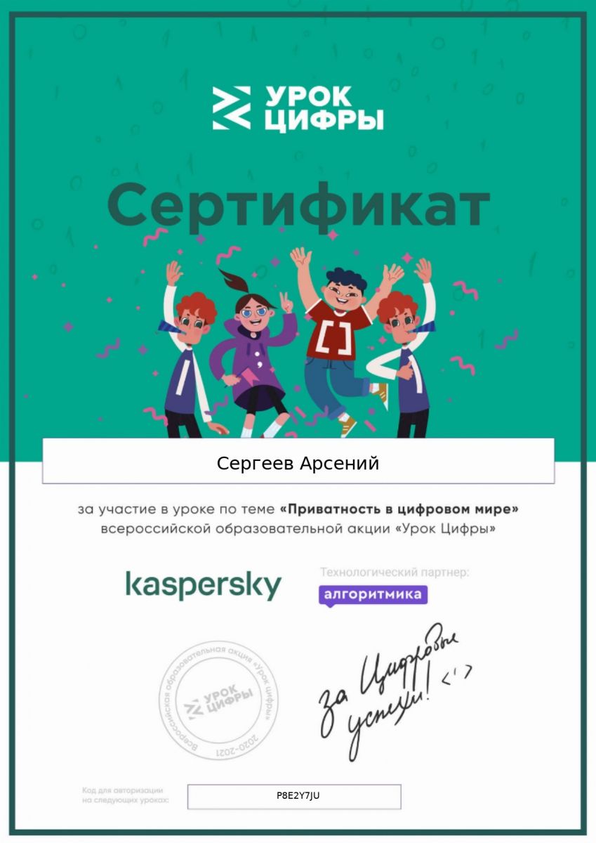 с 8 по 22 февраля 2021 года во всех классах проводился очередной «Урок цифры» по теме «Приватность в цифровом мире». Урок адресован обучающимся 1-11-х классов и направлен на развитие ключевых компетенций цифровой экономики у школьников, а также их раннюю профориентацию в сфере информационных технологий. По окончанию урока учащиеся проходили профориентационный тест и онлайн-тренажер.