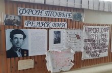 В рамках месячника военно-патриотического воспитания в школе организована выставка " Фронтовые реликвии" . Учащиеся школы принесли семейные архивные фотографии, письма с фронта, боевые награды своих дедушек и бабушек.