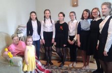 Сегодня учащиеся 7а класса Сепп А.,Сиразиева Л.,Романова Ю.,Гаврилова Е.,Вагизова С.,Фазлиева А., Сипол Р. совместно с классным руководителем Абдуллазяновой Ильсияр Вазиховной поздравили труженницу тыла, вдову ветерана ВОВ Хабибуллину Разяп Гиниятулловну, с 72- ой годовщиной Великой Победы. Дети подарили любимые цветы Разяп Ганиятулловны и вручили открытки сделанные своими руками.