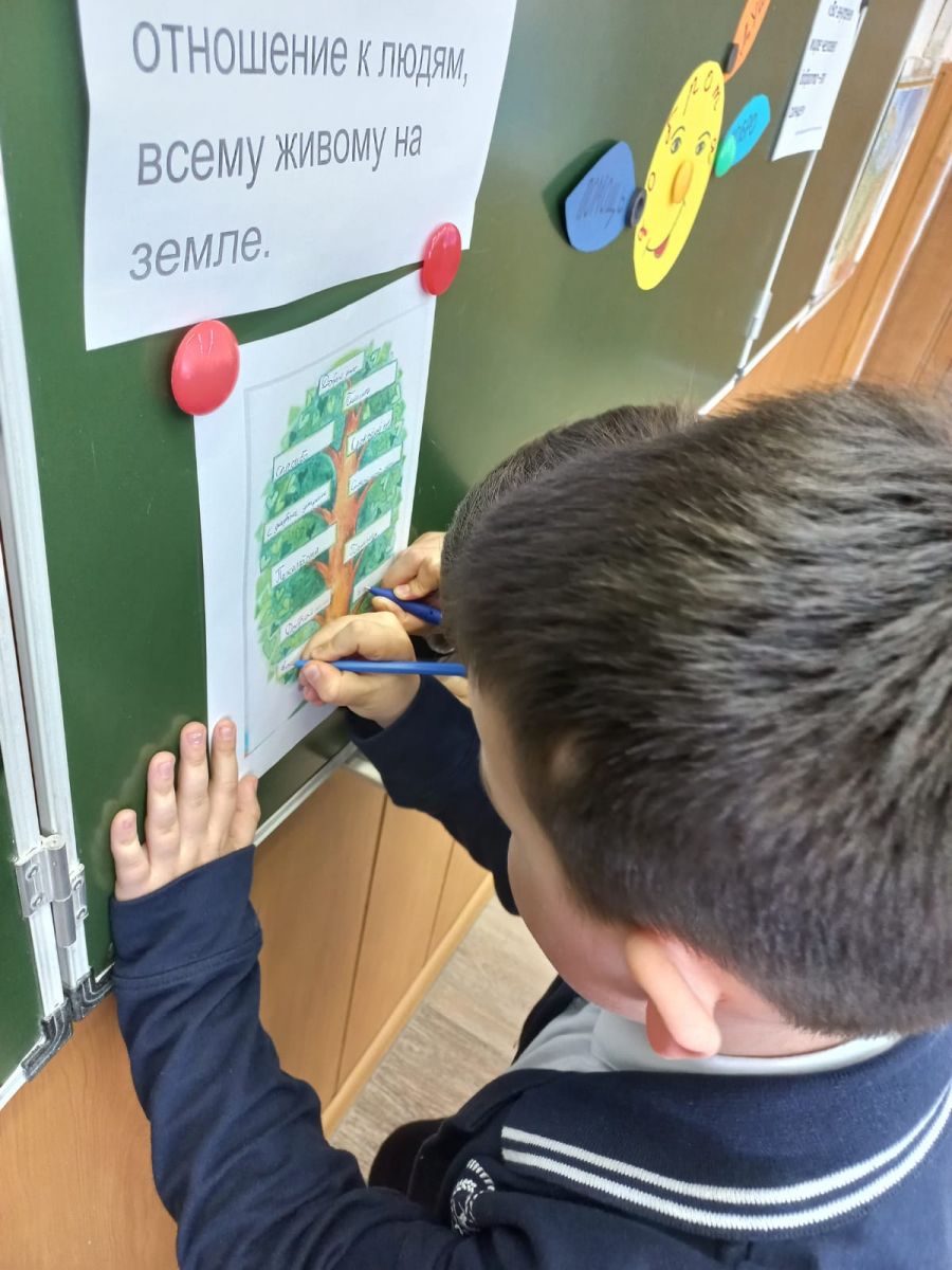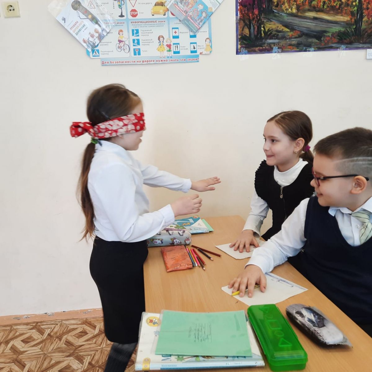посмотрели презентацию «Урок доброты» и видеоролик «Притча о доброте»;выполняли различные практические упражнения: с завязанными глазами нужно было нарисовать дом, принести предметы, выполнить по команде различные движения; общались жестами, мимикой, с помощью пальцев. Дети прослушали и спели песню о доброте. Изготовили коллективно «Дерево добра».