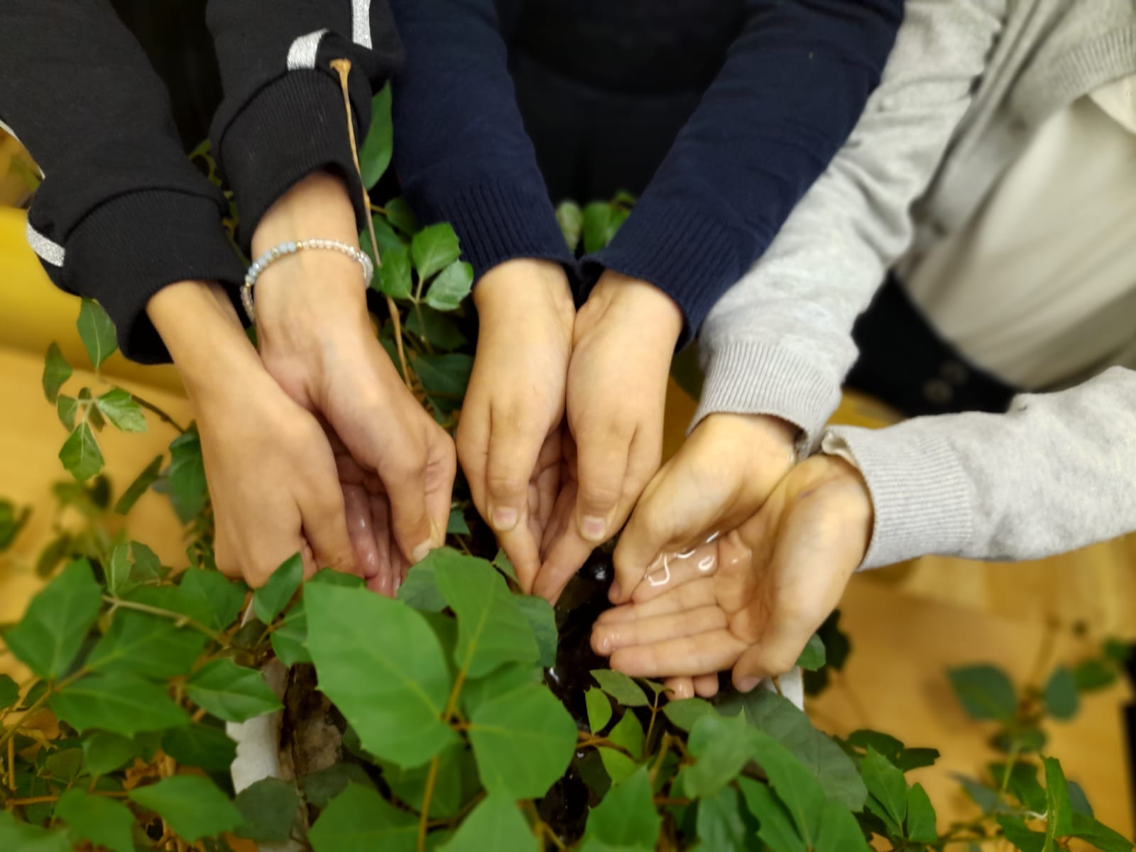 Акция показывает символически через полив цветов напоить погибших. Учащиеся нашей школы набирали воду в сложенные лодочкой ладони и поливали из рук растения.