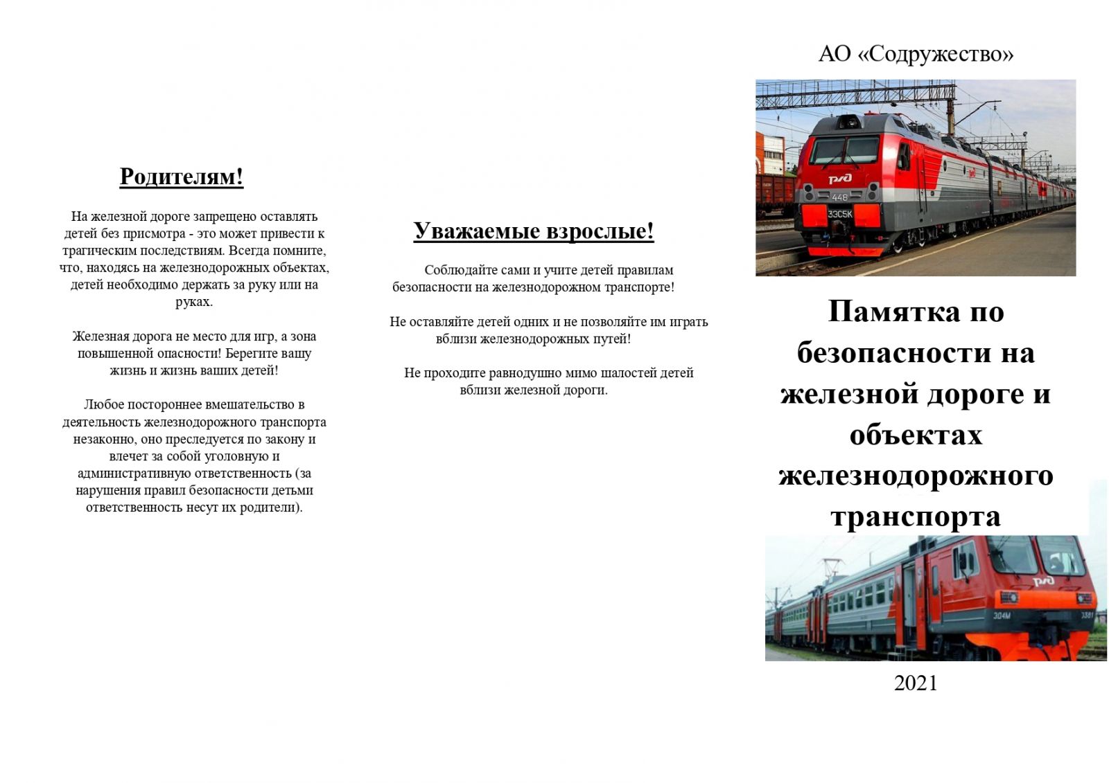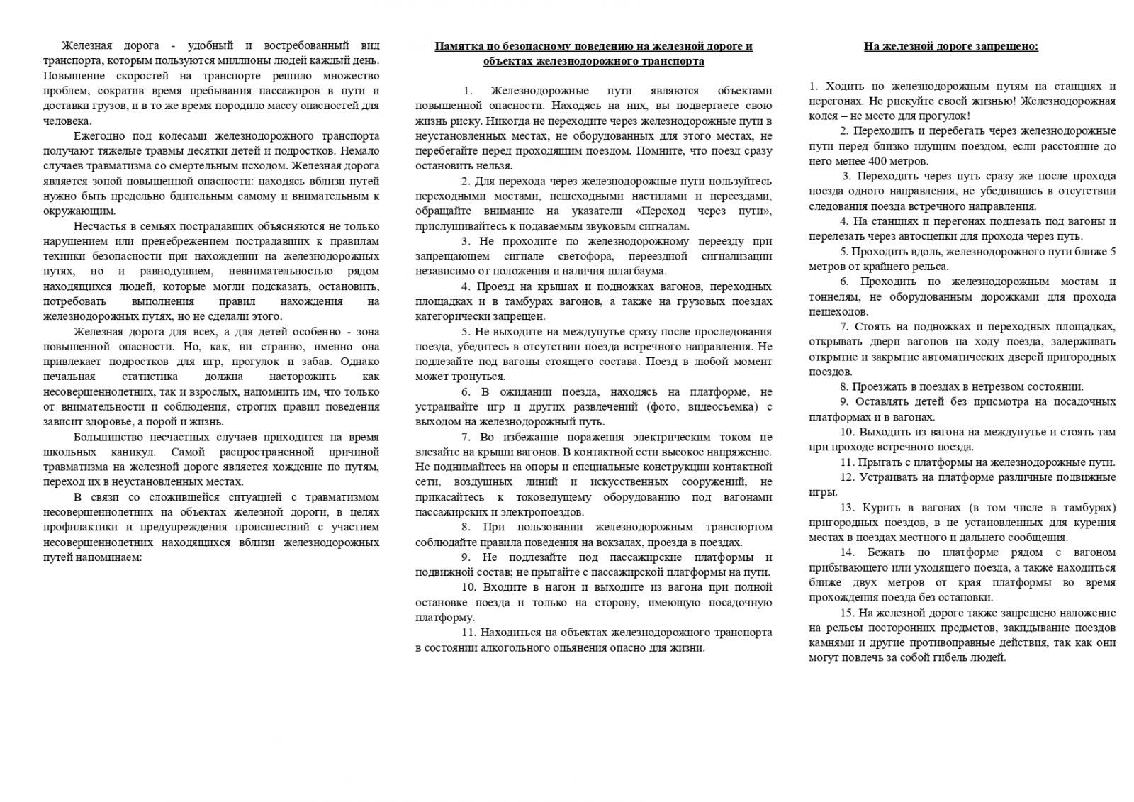 "Памятка по безопасности на железной дороге"