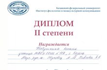 17 марта в Казанском федеральном университете проходила IV республиканская научно-практическая конференция "Юный лингвист" для школьников. Наша ученица Бабушкина Ксения заняла 2 место. Мы поздравляем Ксюшу и её научных руководителей: Жуковец Л.М. и Павлову А.Н.