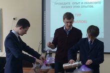 В разгаре предметная неделя естественно-математического цикла.В последний день зимы состоялся физический бой между учащимися 7-ых классов. Знания по физике и смекалку демонстрировали команда 7А класса "Молекулы" и команда 7Б класса "Титаны". Командный дух проверилина способности команды поднять лист бумаги формата А3 не касаясь его. "Титаны" открыли счет.В теоретическом туре команды шли очень близко, сменяя лидера на каждом вопросе.Решающим стал экспериментальный тур, в котором состязались капитаны команд: Айрат (7А) и Булат (7Б) провели опыт с жидким азотом и объясняли наблюдаемое явление. В результате с перевесом в 6 очков выиграла команда "Титаны" и участники получили заслуженные "5", а команда "Молекулы" - "4", но самые результативные участники Айрат и Илья - тоже "5". Поздравляем всех участников и желаем удачи в физике и в жизни!!! -