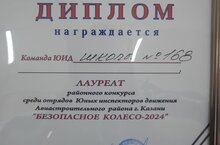 Поздравляем команду 3 класса, лауреата районного конкурса "Безопасное колесо". Администрация школы благодарит классного руководителя 3 класса Булатову Лялю Альтафовну за подготовку участников конкурса.