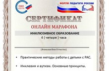 Участие в онлайн марафоне «Инклюзивное образование» 22.04.2020
