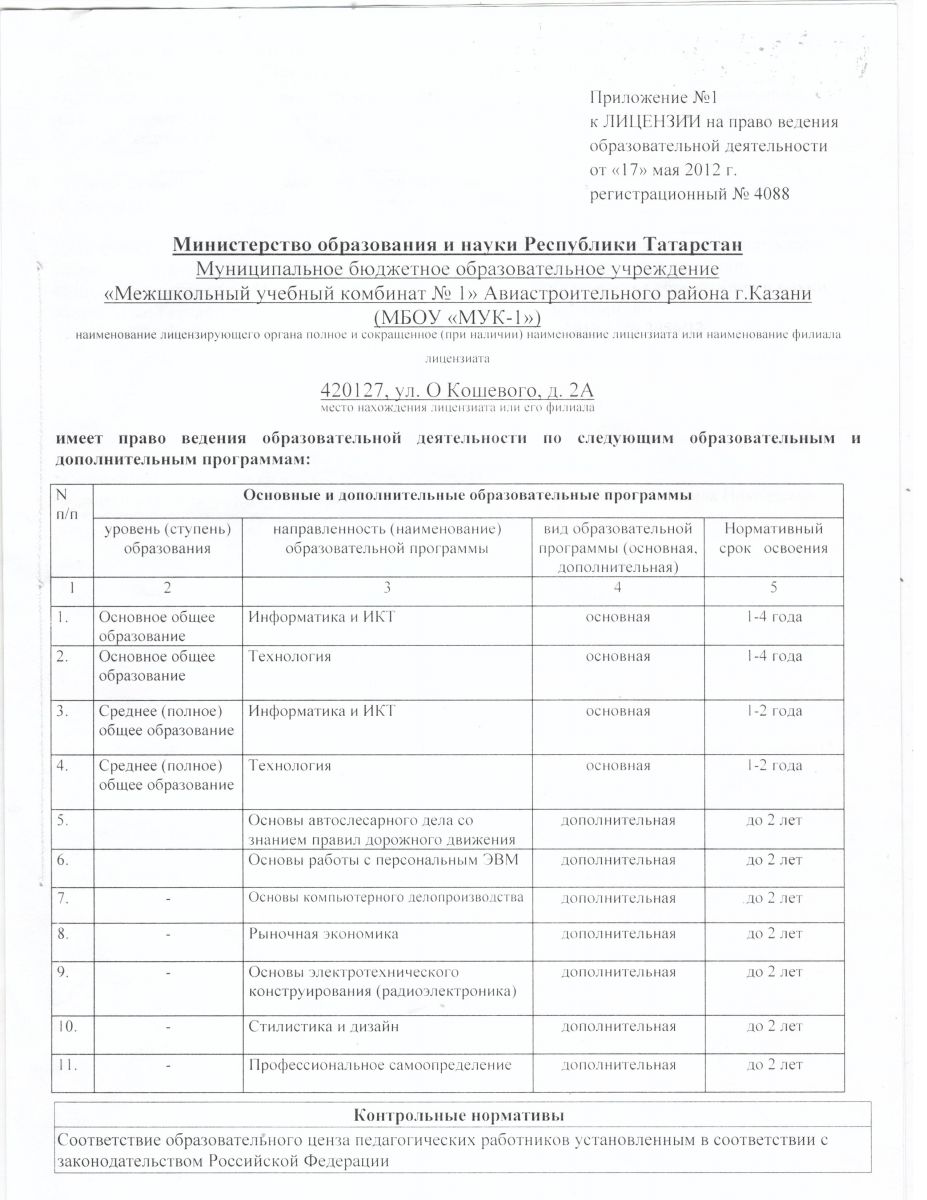 МБОУ «Межшкольный учебный комбинат №1 Авиастроительного района г. Казани» (присоединено к СОШ №112)