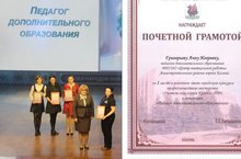 24 декабря в КДК им. В.И. Ленина состоялась торжественная церемония подведения итогов районного этапа городского конкурса профессионального мастерства «Учитель года города Казани - 2020» в номинации «Педагог дополнительного образования». Педагог технического отдела Григорьева Анна Игоревна награждена Почетной грамотой Отдела образования «Управление образования Исполнительного комитета муниципального образования г. Казани» по Авиастроительному и Ново-Савиновскому районам г.Казани за 1 МЕСТО в конкурсе.