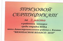 18 марта прошел районный конкурс «Юный инспектор движения» школ Авиастроительного района г.Казани «БЕЗОПАСНОЕ КОЛЕСО- 2019». Конкурс проводился по следующим этапам: «Фигурное вождение велосипеда», «Знаток правил дорожного движения», «Знание основ оказания первой помощи». Учащиеся двух объединений «ЮИДД» (педагоги Муллаянова В.Г. и Михайлова Э.Г.) успешно приняли участие во всех этапах конкурса и заняли призовые места.