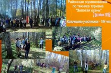 Информация о проведении районных соревнований по технике туризма «Золотая осень». 06.10.2016Согласно положения и приказа Управления образования ИКМО г. Казани по Авиастроительному и Ново-Савиновскому районам и согласно планов работы отдела туризма, краеведения, экологии ЦВР Авиастроительного района(Приказ №280 от 14.09.2016г.) 1, 2 октября 2016 г. были проведены районные соревнования по технике туризма «Золотая осень».1-го октября в 7.00 утра ГСК и судейская бригада провели постановку дистанции.2-го октября в 10.00 часов утра состоялось построение, показ дистанции и в 11.00 начались соревнования.Участие приняли 20 команд из школ №№ 26, 36, 37, 54, 62, 77, 145, 112, 119, 145, ЧОУ «Усмания», сборная ЦВР, Поволжская Академия спорта и туризма, студенты ВУЗов, 19ПДО, 30 болельщиков. Команды были представлены в старшем, среднем и младшем возрасте.Общее количество участников соревнований составило 184 человека.
