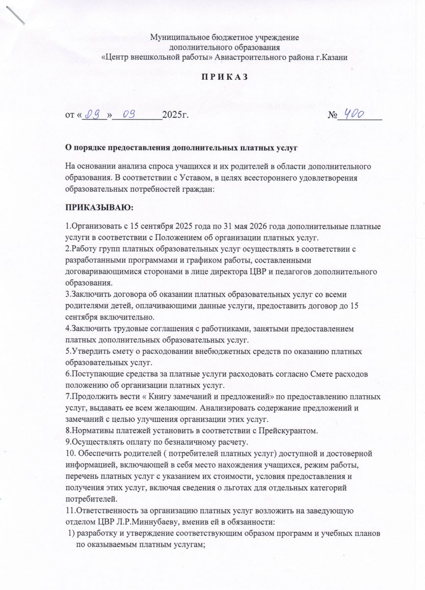Приказ о порядке предоставления дополнительных платных услуг на 2025-2026 2 стр.