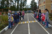 ПРАКТИЧЕСКОЕ МЕРОПРИЯТИЕ ПО ПРАВИЛАМ БЕЗОПАСНОСТИ НА ДОРОГЕ 07.10.2016 Старший инспектор по пропаганде ДДТТ по Авиастроительному району ОГИБДД УМВД РФ по г. Казани Насыров Р. Д. провел практическое занятие с детьми подготовительной к школе группы по правилам безопасного поведения на дороге.