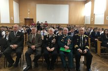 На данном мероприятии присутствовали приглашенные гости - председатель Комитета ветеранов войны и военной службы Республики Татарстан, член Общественной палаты Республики Татарстан, генерал-майор запаса Ахат Гайнулович Юлашев, ветераны военной службы Р.Г.Абсалямов, Ф.Г.Хабибуллин. Выступление учащихся 6, 9-11-х классов сопровождалось презентацией «Мы шли на помощь тебе, блокадный Ленинград...». Ахат Гайнулович Юлашев рассказал ребятам о современном положении армии, о военных конфликтах в мире. Ребята с большим вниманием слушали выступление. Генерал-майор запаса А.Г.Юлашев коллективу школы вручил ценные подарки - телевизор, DVD плеер и фотоаппарат.