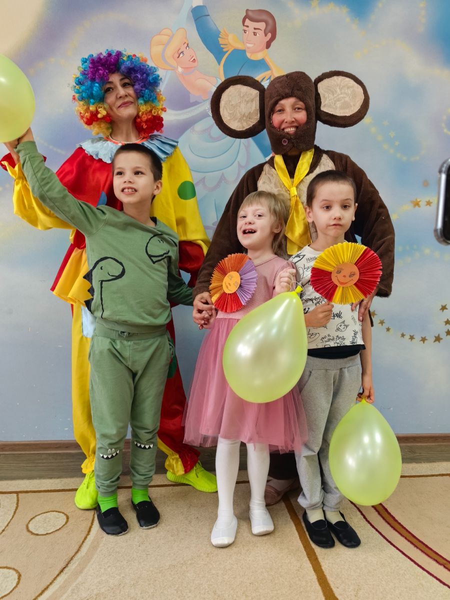 Сегодня для наших "солнечных лучиков" был организован весёлый праздник с играми, песнями, танцами и конечно же подарками от старшей группы в гости пришел яркий клоун и всеми любимый Чебурашка.