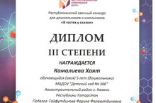 Поздравляем Камалиеву Хаят с победой в республиканском конкурсе для дошкольников " Я рисую сказку", организованным Республиканским олимпиадным центром. Руководитель: Гайфутдинова Фариза Фалахутдиновна.